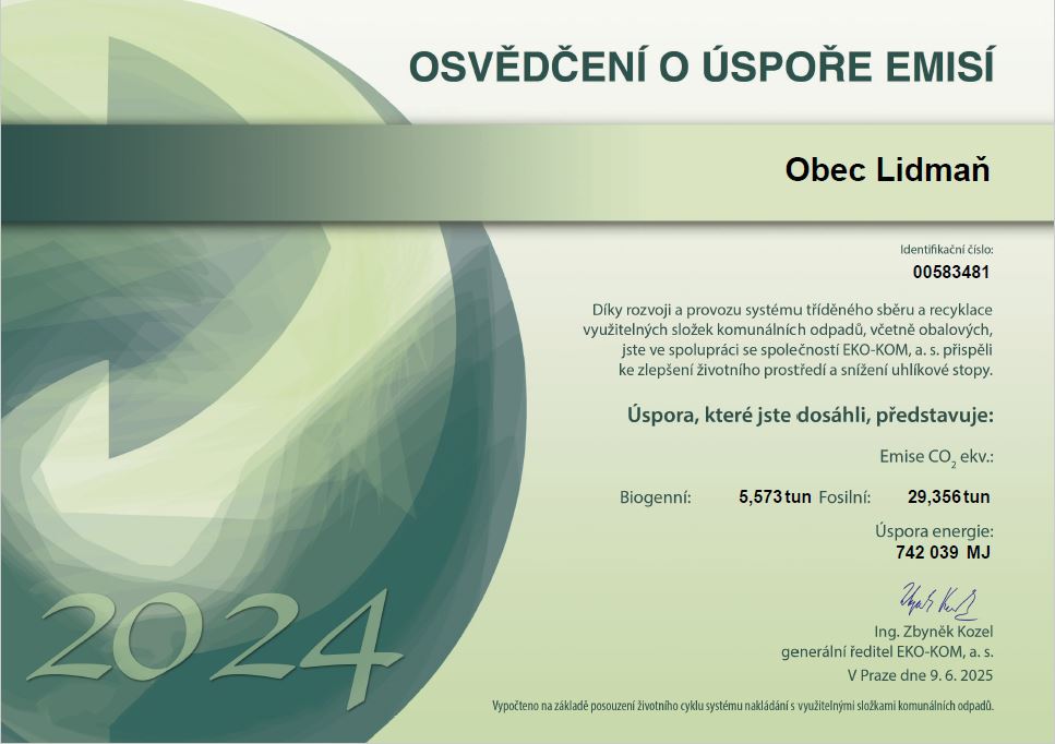 Osvědčení o úspoře emisí 2024